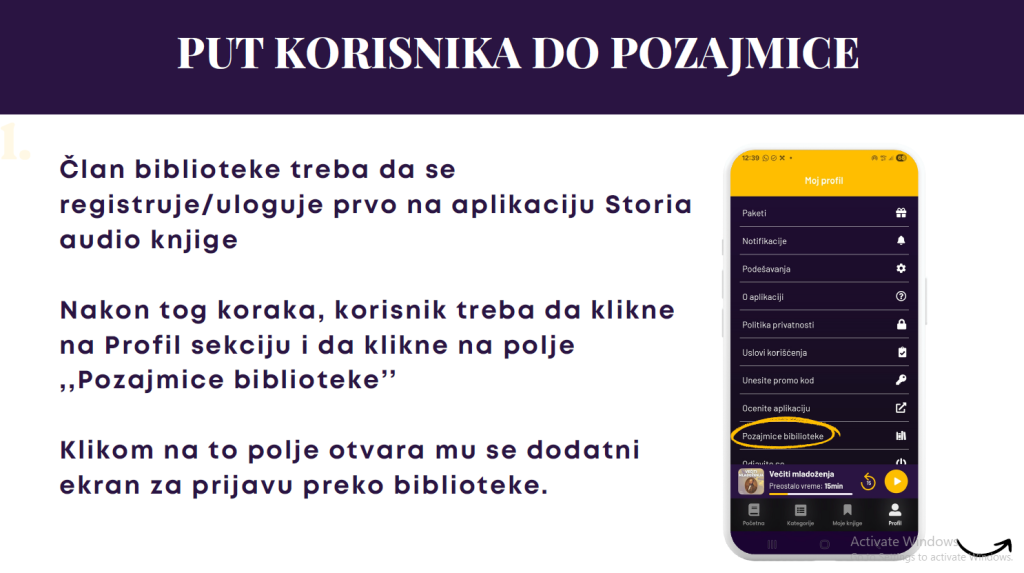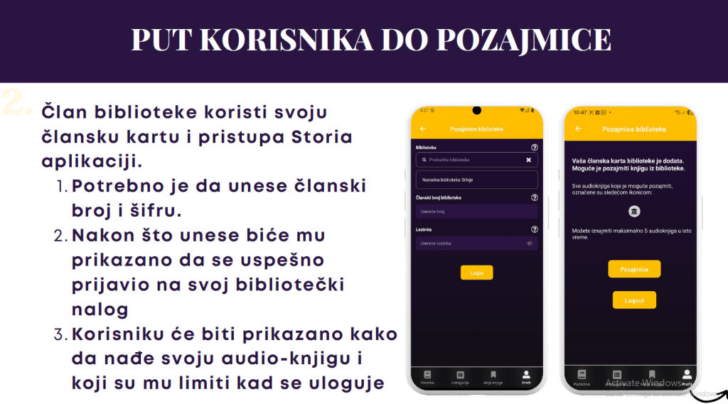 Да би корисници могли да користе ову услугу, потребно је да преузму апликацију са Google Play-а или App Store-а, улогују се путем мејла којим су регистровани у COBISS-у, осмисле лозинку и добиће приступ апликацији. За све недоуимице, библиотекари су ту да им помогну и спроведу кроз процес пријаве.